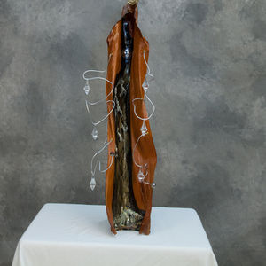 My pieces are one-of-a-kind: I use "found objects" in nature and combine them with photos, pieces of stone, shell, glass, leather and music manuscript.